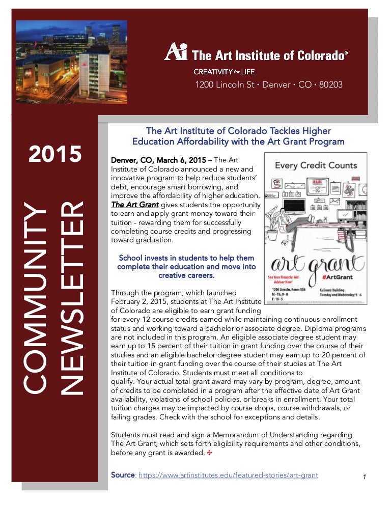 Art Institute Of Colorado 2015 Community Newsletter Final